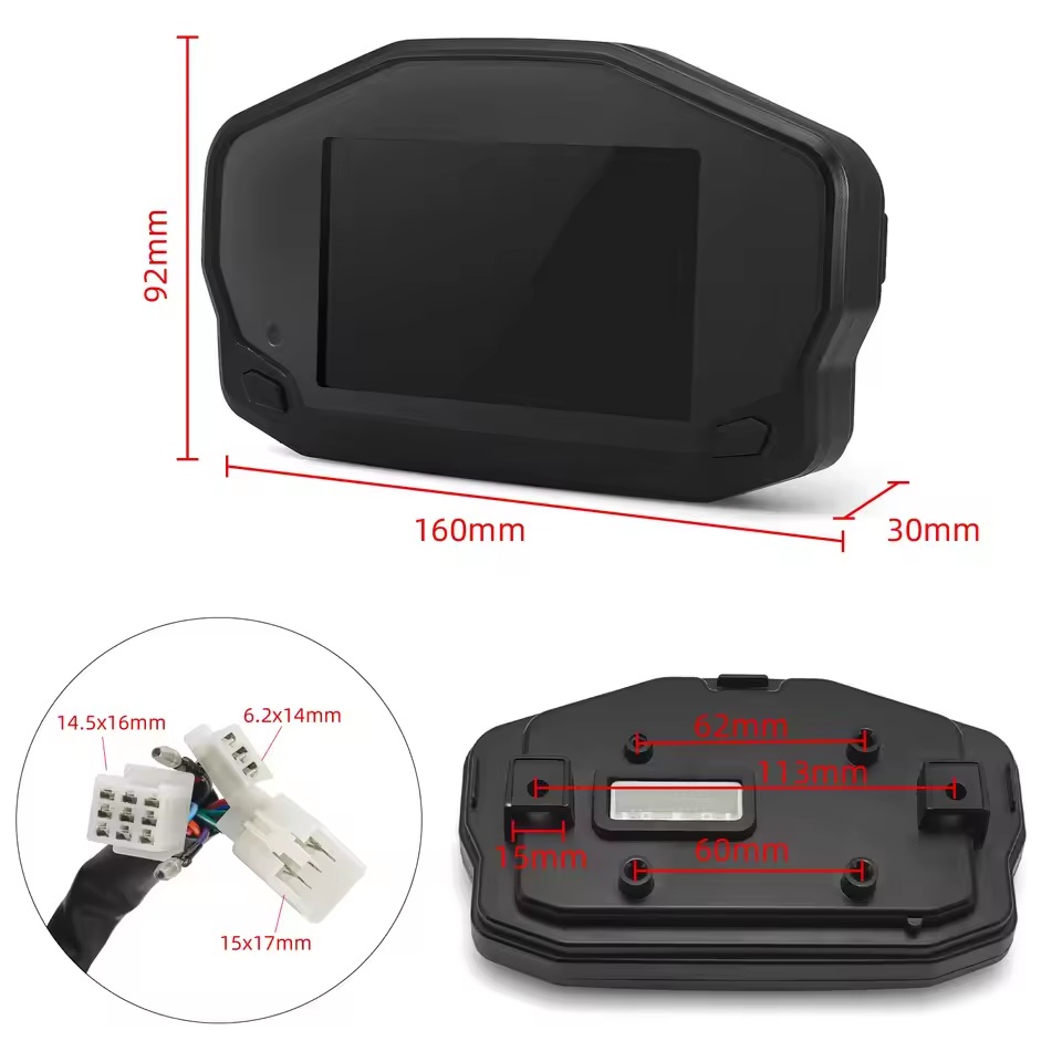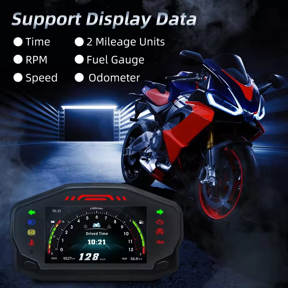 12V Universal Motorbike Tachometer TFT Digital Speedometer HUD Display